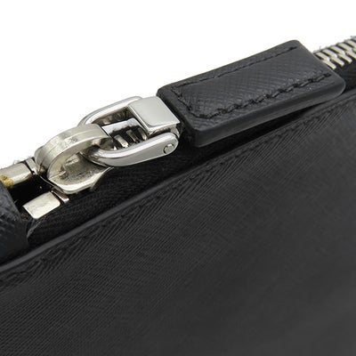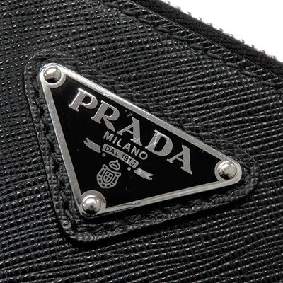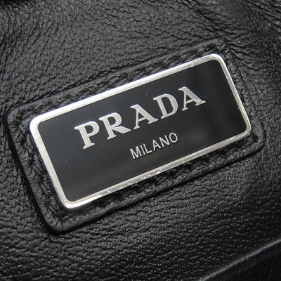 プラダ PRADA 2WAYバッグ クジラプリント サフィアーノ レザー ブラック シルバー金具 クラッチ ショルダー 黒 トライアングルロゴ くじら 【中古】