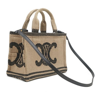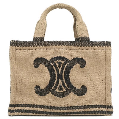 セリーヌ CELINE 2WAYバッグ トリオンフ カバタイス キャンバス テキスタイル ナチュラル×ブラック ゴールド金具 ハンドバッグ ショルダー ラフィア風 199162EGH.02BL 【中古】