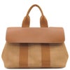 【外側】表面に擦れ、レザーに擦れや擦れ傷、薄汚れや押し跡、シワ、四つ角に擦れや剥げ、コバにヒビ、ハンドルに黒ずみ、ポーチにシミ、金具に擦れや小傷、錆【内側】擦れや毛羽立ち、薄汚れ【におい】保管臭