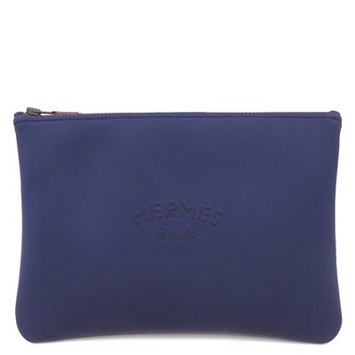 エルメス HERMES ポーチ トゥルースフラット ネオバン MM ナイロン ポリアミド エラスタン ブルーマリン マットブラック金具 紺 ウエットスーツ風 ボンディング 【中古】