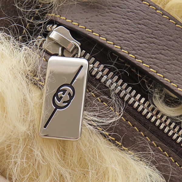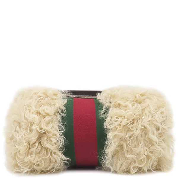 グッチ GUCCI ポーチ ファー ウェブ ストライプ ファー ベージュ シルバー金具 コスメティックケース クラッチバッグ 759689 【保存袋】 【中古】