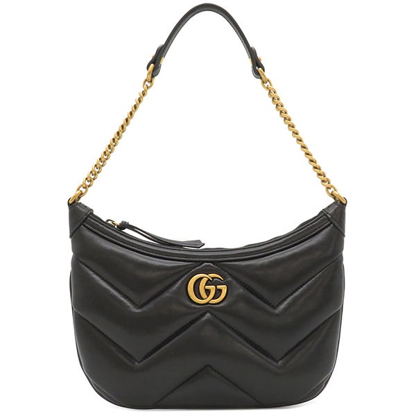グッチ GUCCI ショルダーバッグ GGマーモント スモール レザー ブラック ヴィンテージ金具 黒 チェーンショルダー 777263 【中古】
