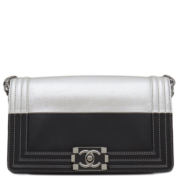 シャネル CHANEL ショルダーバッグ ボーイシャネル カーフ シルバー×ブラック シルバー金具 黒 バイカラー ココマーク 21****** 【中古】