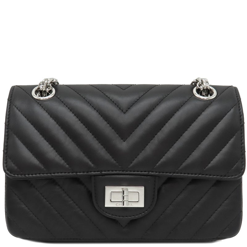 シャネル CHANEL ショルダーバッグ シェブロン 2.55 20 レザー ブラック シルバー金具 黒 Wチェーン Vステッチ ランダムシリアル 【箱】 【中古】