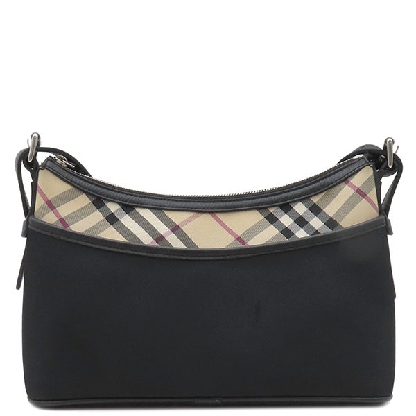 バーバリー BURBERRY ショルダーバッグ ノバチェック キャンバス レザー ベージュ×ブラック シルバー金具 黒 【中古】
