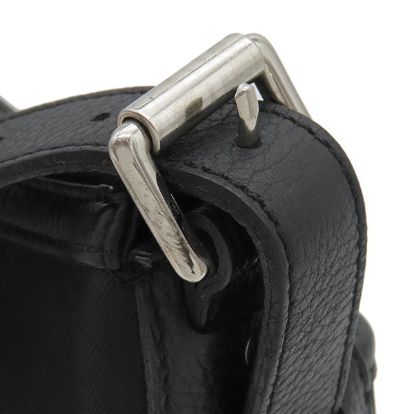 【外側】若干の型崩れやシワ、表面に擦れや薄汚れ、四つ角やフチを含む黒レザーに擦れ、僅かな剥げ、ショルダーに擦れや押し跡、クセ、コバに擦れやヒビ、ポケットに点汚れ、金具に擦れや小傷、塗装剥げ【内側】生地に擦れ、レザーに擦れやシワ、薄汚れや剥げ、僅かなクセ、生地に擦れ【におい】僅かな保管臭