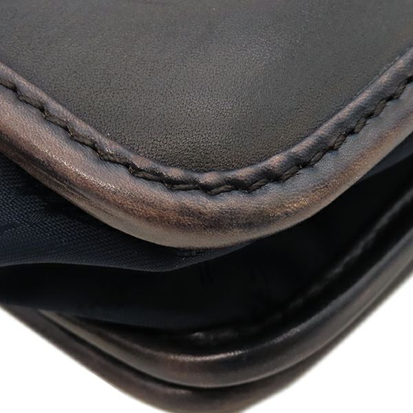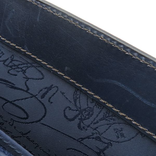 ベルルッティ BERLUTI ショルダーバッグ ラッキーデー スクリット カリグラフィ レザー ナイロン ブラウン×ブルー シルバー金具 茶 青 メッセンジャー 斜め掛け 【中古】