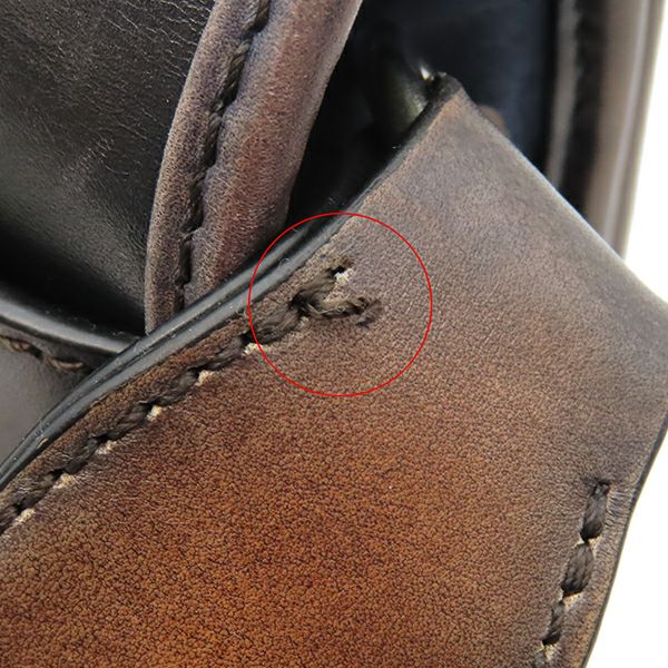 【外側】表面に擦れや擦れ傷、僅かな薄汚れ、四つ角に擦れ、ショルダーに擦れやクセ、糸の飛び出し、コバに剥がれ、金具に擦れやくすみ【内側】外側含む内側生地に薄汚れ、レザーに擦れ傷や押し跡【におい】僅かな保管臭
