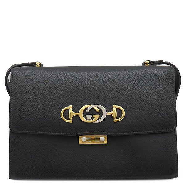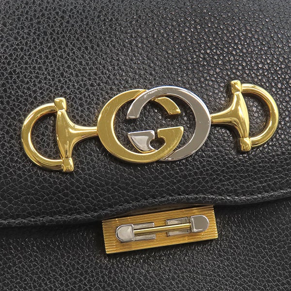 グッチ GUCCI ショルダーバッグ ズゥミ チェーン ショルダー レザー ブラック ゴールド金具 インターロッキングG ホースビット GD金具 SV金具 576388 【中古】