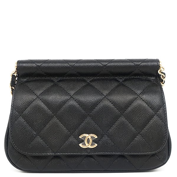 シャネル CHANEL ショルダーバッグ ミニ チェーンショルダー レザー キャビアスキン ブラック ゴールド金具 黒 ココマーク ランダムシリアル 【中古】