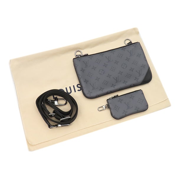 ルイヴィトン LOUIS VUITTON ショルダーバッグ トリオ メッセンジャー レザー モノグラムエクリプス リバース キャンバス モノグラムエクリプス シルバー金具 黒 グレー M69443 RFID 【保存袋】 【中古】