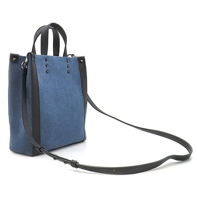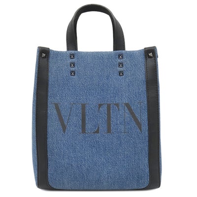ヴァレンティノ VALENTINO 2WAYバッグ VLTN ロゴ デニム レザー ブルー×ブラック シルバー金具 青 黒 ショルダー トート スタッズ 2Y2B0B78 【中古】