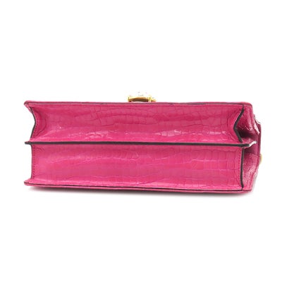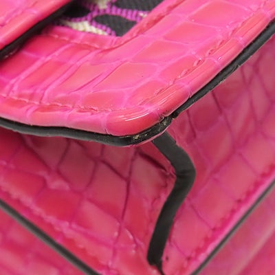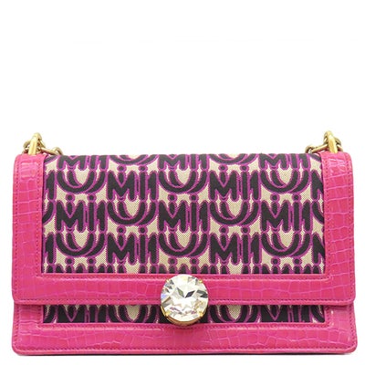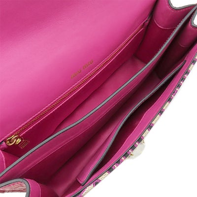 ミュウミュウ MIU MIU ショルダーバッグ チェーンショルダー キャンバス レザー ピンク ゴールド金具 エムエムパリス ロゴ 総柄 クロコ型押し ビジュー 【中古】