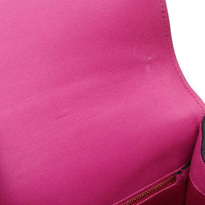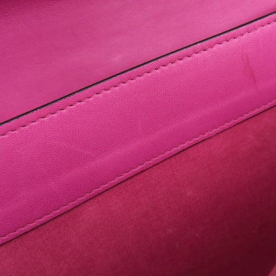 【外側】僅かな反り、表面レザーや生地に薄汚れ、四つ角やフチに擦れ、ショルダーに薄汚れ、ビジューに擦れや僅かな小傷、金具に擦れやくすみ【内側】フラップ裏や内側生地に擦れや薄汚れ、押し跡、コバにヒビ【におい】強い保管臭