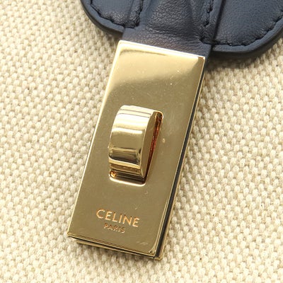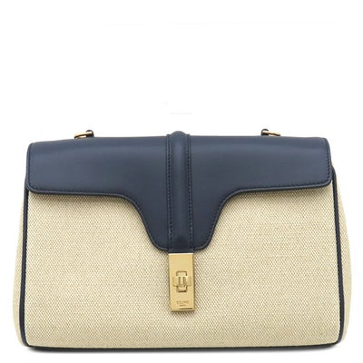セリーヌ CELINE ショルダーバッグ ティーン ソフト 16 セーズ カーフ ファブリック ネイビー×ベージュ ゴールド金具 新品 未使用 キャンバス 196852DJ9 【保存袋】 【新品】
