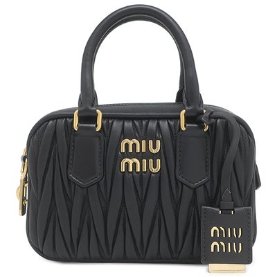 ミュウミュウ MIU MIU 2WAYバッグ アルカディ マテラッセ レザー バッグ スモール レザー ブラック ゴールド金具 ハンドバッグ ショルダー 5BB123 【保存袋】 【中古】
