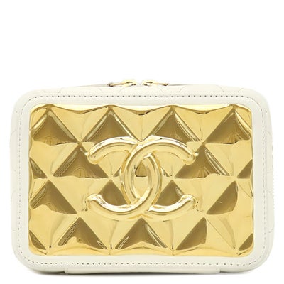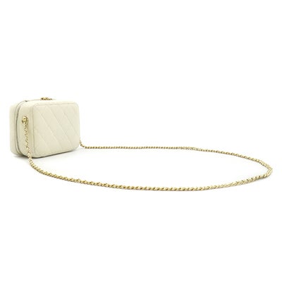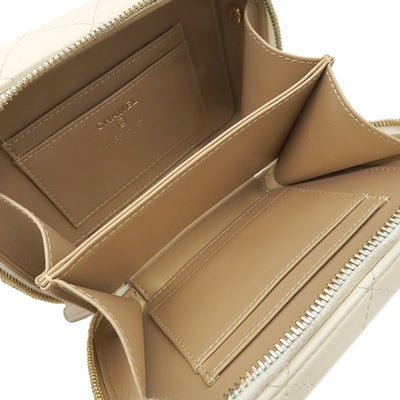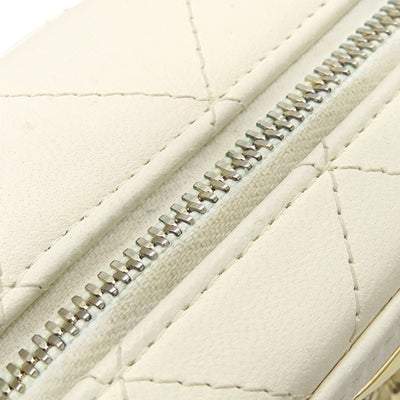 シャネル CHANEL ショルダーバッグ ジップ アラウンド バニティ ラムスキン ホワイト ゴールド金具 ココマーク プレート アイボリー 31****** 【中古】