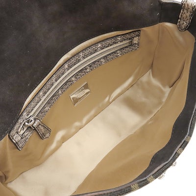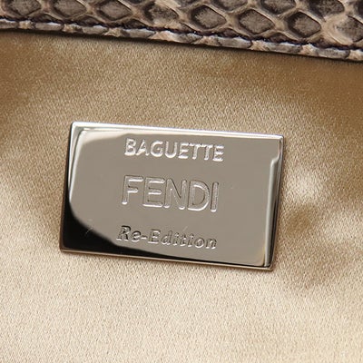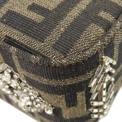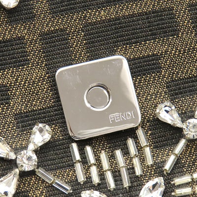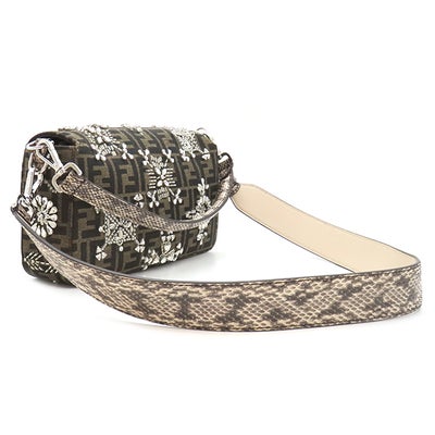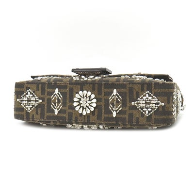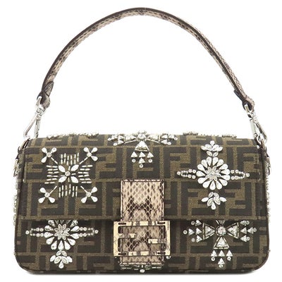 フェンディ FENDI 2WAYバッグ バゲット ジャガード キャンバス パイソン ブラウン シルバー金具 ズッカ柄 ビジュー クリスタル 25周年復刻デザイン 8BR600 【保存袋】 【中古】
