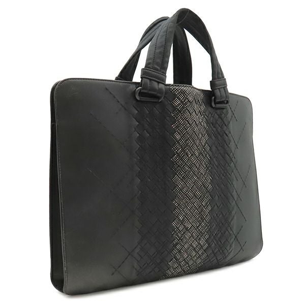 ボッテガヴェネタ BOTTEGA VENETA トートバッグ イントレチャート ビジネスバッグ レザー ブラック マットブラック金具 黒 【中古】