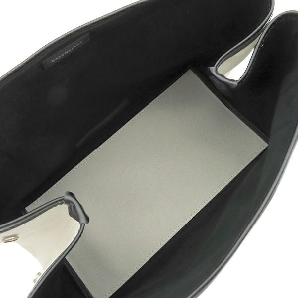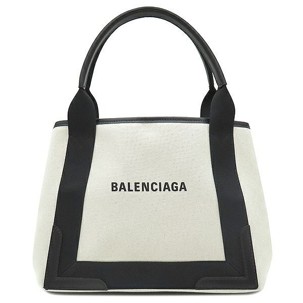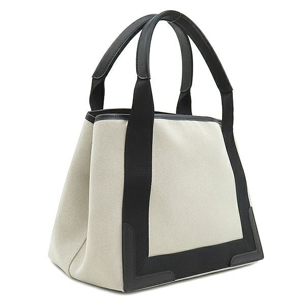 バレンシアガ BALENCIAGA トートバッグ ネイビーカバス S キャンバス レザー ナチュラル×ブラック シルバー金具 アイボリー 黒 339933 【保存袋】 【中古】