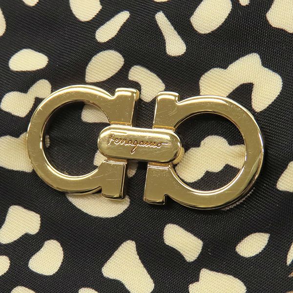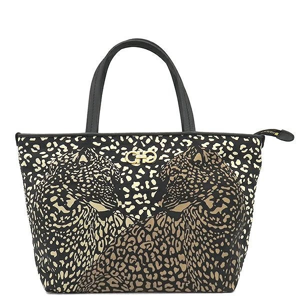 サルヴァトーレ・フェラガモ Salvatore Ferragamo トートバッグ ガンチーニ レオパード ナイロン レザー ブラック×マルチカラー ゴールド金具 ヒョウ柄 GU-21E187 【保存袋】 【中古】