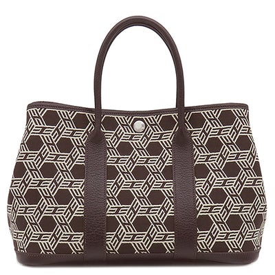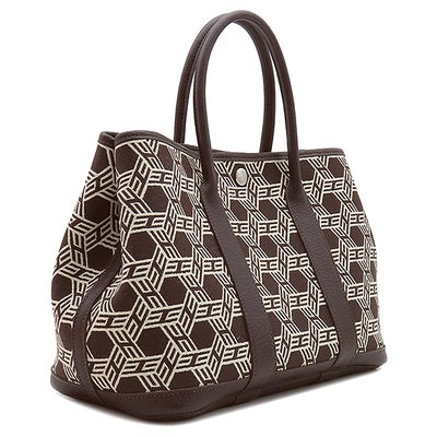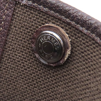 エルメス HERMES トートバッグ ガーデンパーティーTPM トワルソーアッシュ レザー ブラウン×ホワイト シルバー金具 茶 白 Hロゴ □K 【中古】