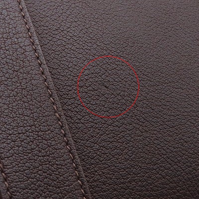 【外側】茶レザーに僅かな擦れや押し跡、四つ角に擦れ、コバに擦れやヒビ、金具に擦れ【内側】擦れや毛羽立ち、僅かな薄汚れ【におい】保管臭【刻印の場所】内側側面レザー部分