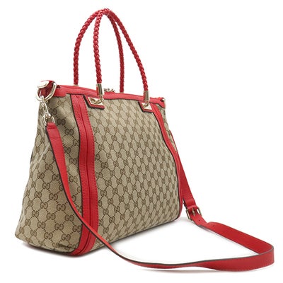 グッチ GUCCI 2WAYバッグ バンブー タッセル トート GGキャンバス レザー ベージュ×レッド ゴールド金具 ハンドバッグ ショルダー 赤 296646 【保存袋】 【中古】