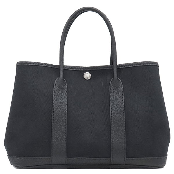エルメス HERMES トートバッグ ガーデンパーティーTPM トワルシェブロン ネゴンダ ブラック シルバー金具 黒 C刻印 【中古】