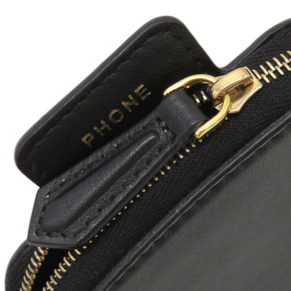 フェンディ FENDI スマートフォンケース ストラップ ユー スマホケース付き レザー ブラック ゴールド金具 ショルダーストラップ ズッカ柄 黒 8AV132 【中古】