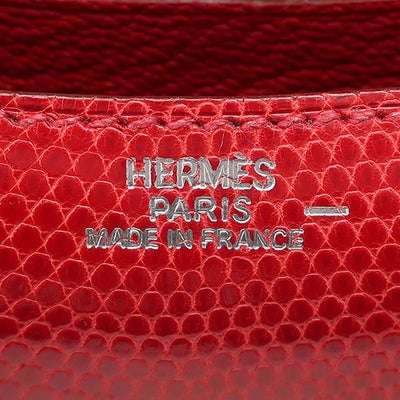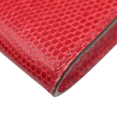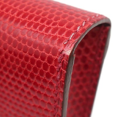エルメス HERMES メガネケース フラップ アイ グラス ケース リザード レッド系 シルバー金具 赤 アイウェアケース □F刻印 【中古】