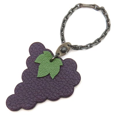 エルメス HERMES キーホルダー ブドウ フルーツ チャーム シェーブル レザン シルバー金具 紫 グレープ フルーツモチーフ 【中古】