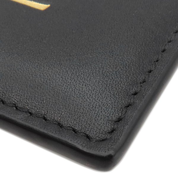 ロエベ LOEWE カードケース エンボス プレーン カードホルダー カーフ ブラック×ゴールド 黒 ロゴ 定期入れ カード入れ CLE0322X01 【中古】
