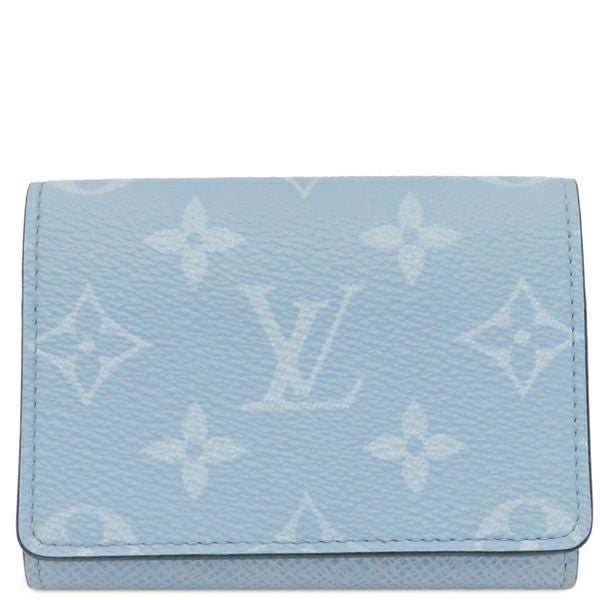 ルイヴィトン LOUIS VUITTON カードケース アンヴェロップ カルト ドゥ ヴィジット レザー タイガラマ スカイブルー シルバー金具 水色 名刺入れ 定期入れ M14118 RFID 【箱】 【中古】