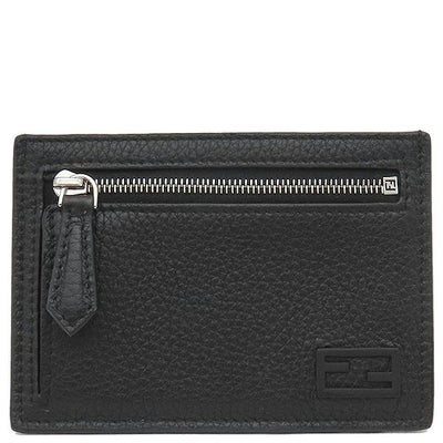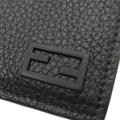 フェンディ FENDI カードケース ロゴ カードホルダー レザー ブラック シルバー金具 黒 FF フラグメントケース コインケース 7M0310 【箱】 【中古】