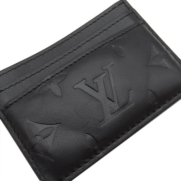 ルイヴィトン LOUIS VUITTON カードケース ポルトカルト クッサン ラムスキン ノワール ゴールド金具 黒 モノグラム エンボス LVサークル M82748 RFID 【中古】