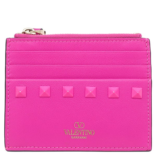 ヴァレンティノ VALENTINO カードケース ロックスタッズ カードケース レザー ピンク ゴールド金具 フラグメントケース コインケース 4W2P0T35ZKZ 【箱】 【中古】