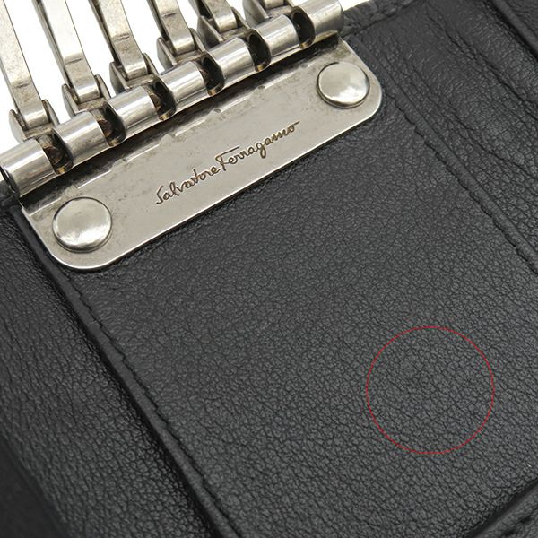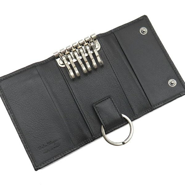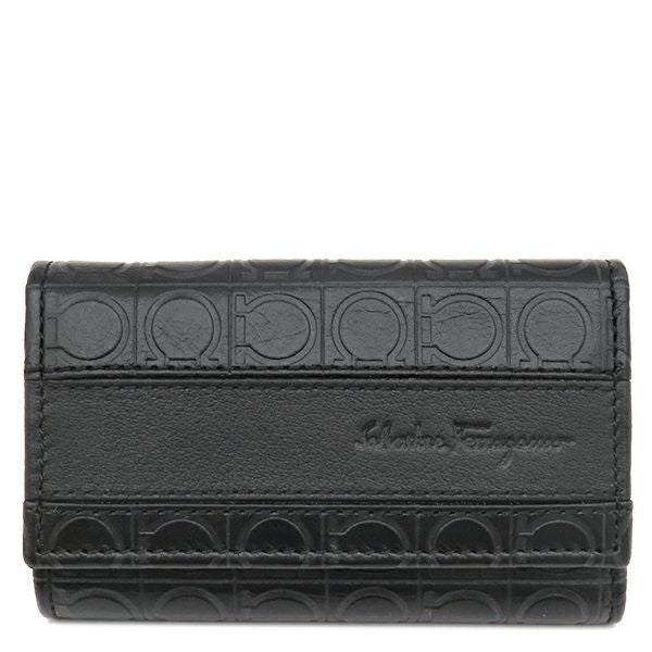 サルヴァトーレ・フェラガモ Salvatore Ferragamo キーケース ガンチーニ 6本 6連 レザー ブラック シルバー金具 黒 鍵入れ キーリング フラップ式 型押し 【箱】 【中古】