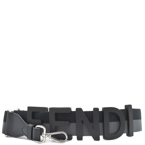 フェンディ FENDI ショルダーストラップ ストラップユー キャンバス レザー ブラック×グレー シルバー金具 バイカラー ロゴ ズッカ 【保存袋】 【中古】