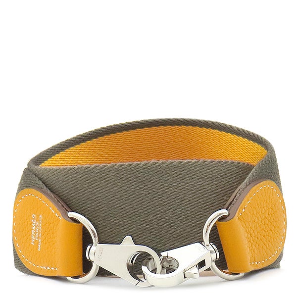 エルメス HERMES ショルダーストラップ バンドリエール サングル ヴォースイフト トワルコットン エトゥープ×サフラン シルバー金具 グレージュ 黄色 【保存袋】 【中古】