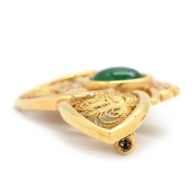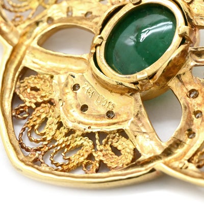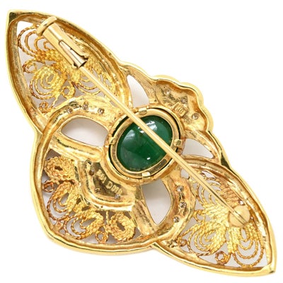 ブローチ エメラルド ダイヤ イエローゴールド ハチ MOTH 昆虫モチーフ 【中古】