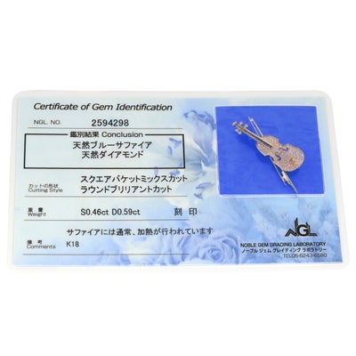 ブローチ ダイヤ サファイア イエローゴールド バイオリンモチーフ YG 18K ピンブローチ ブルー 青 楽器 パヴェダイヤ 【中古】