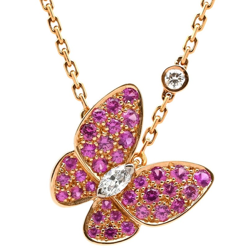ヴァンクリーフアーペル Van Cleef & Arpels ネックレス ドゥ パピヨン ペンダント ピンクXローズゴールド ピンクゴールド 18K ピンクサファイア ダイヤモンド VCARO3M200 【修理証明書】 【中古】