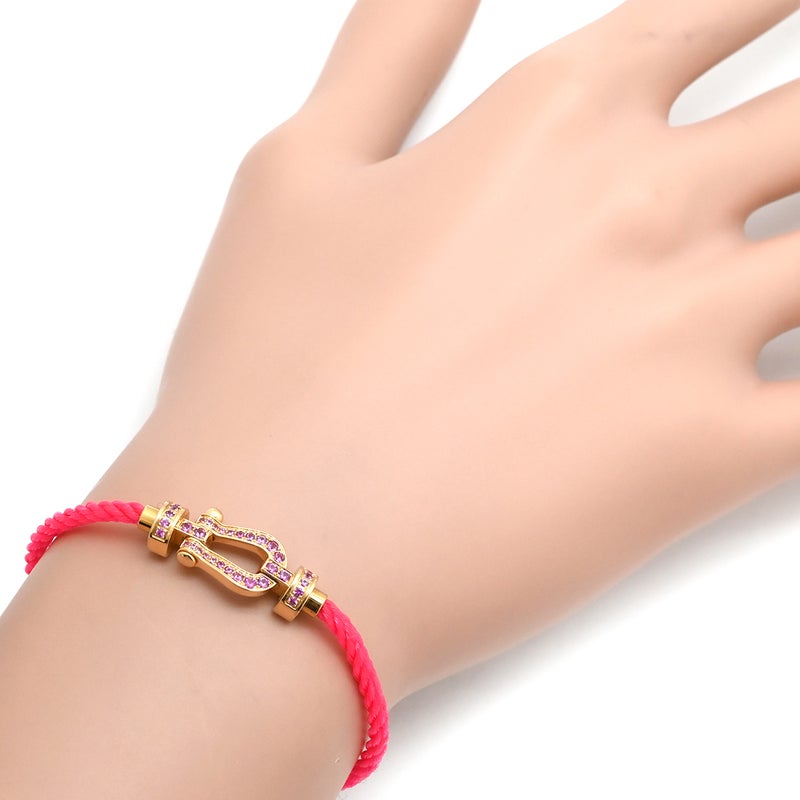 フレッド FRED ブレスレット フォース10 MM ピンクゴールド×ピンク #14 ダイヤ Au750 18K 18金 ピンクサファイア ミディアムモデル 【中古】