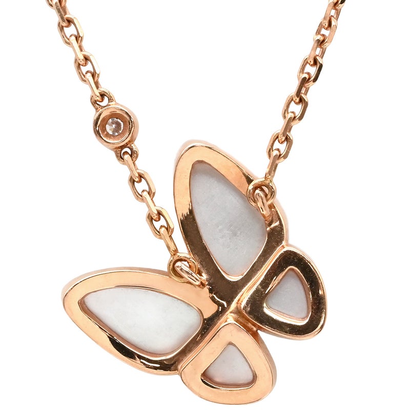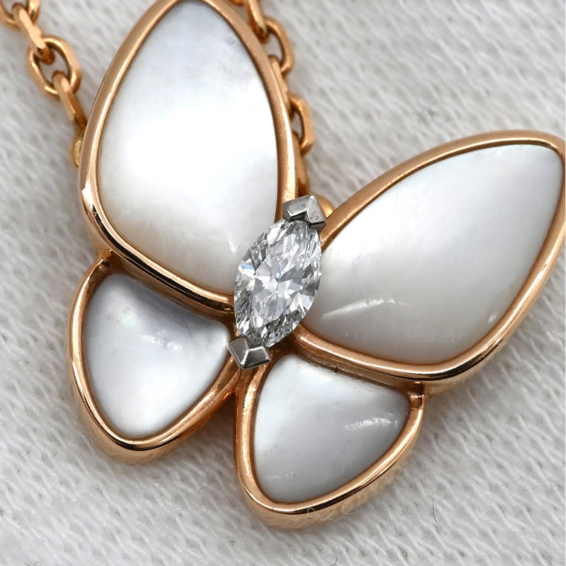 ヴァンクリーフアーペル Van Cleef & Arpels ネックレス ペンダント ホワイト×ローズゴールド ローズゴールド PG 18K シェル 蝶 ダイヤモンド VCARO8FO00 【中古】