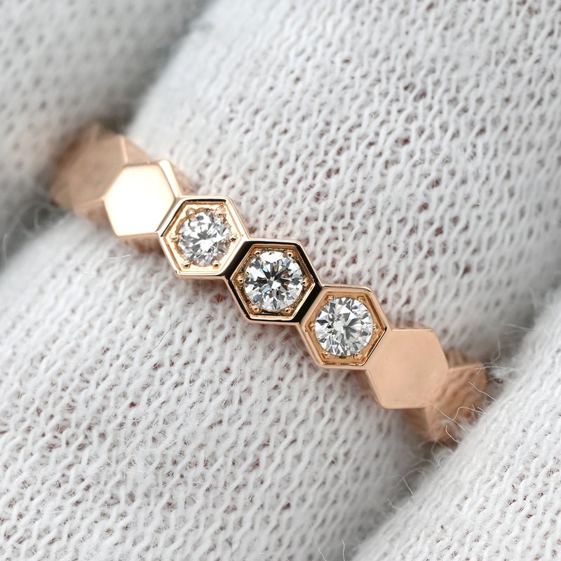 ショーメ CHAUMET リング 指輪 ビー ドゥ ショーメ ハニカム ピンクゴールド #51 Bee My Love 3P 3石 3粒 ダイヤ 11号 083361-051 【保証書】 【中古】