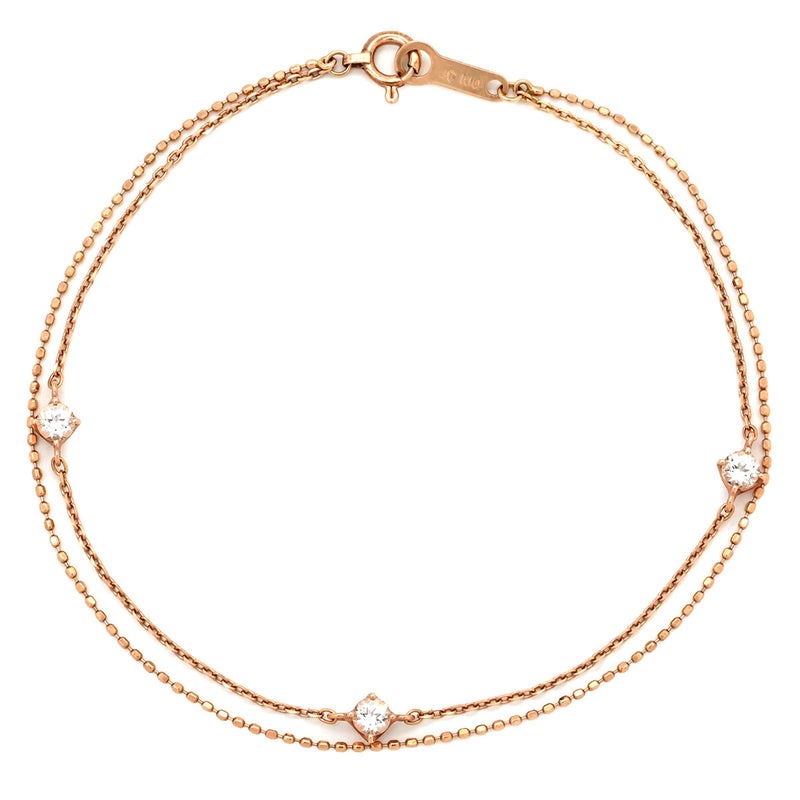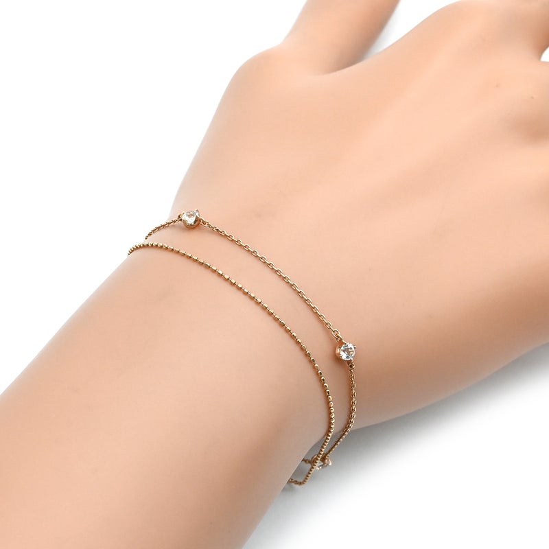 4℃ 4℃ ブレスレット K10 2連 ピンクゴールド 10 2重 クリアストーン 2重 【中古】
