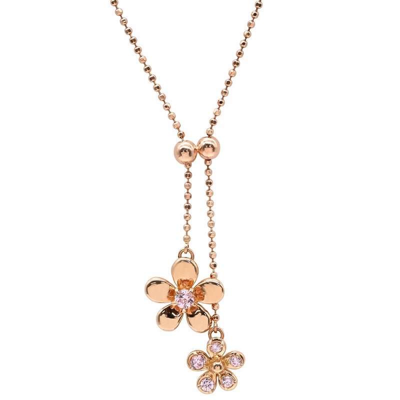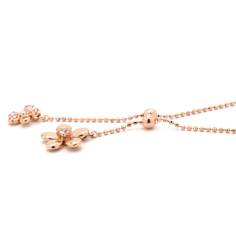 ヴァンドーム VENDOME ネックレス フラワー ピンクゴールド 10K 色石 フラワー 花モチーフ 桜 さくら サクラ Y字ライン スライドボール 【中古】
