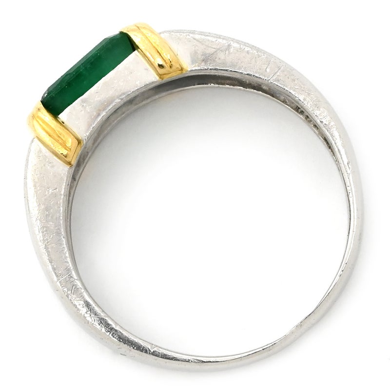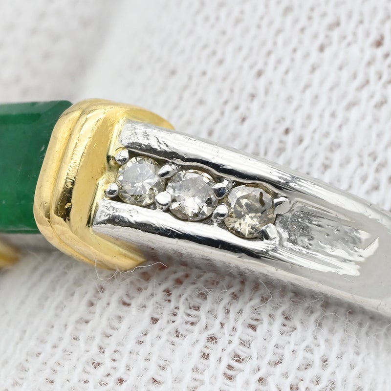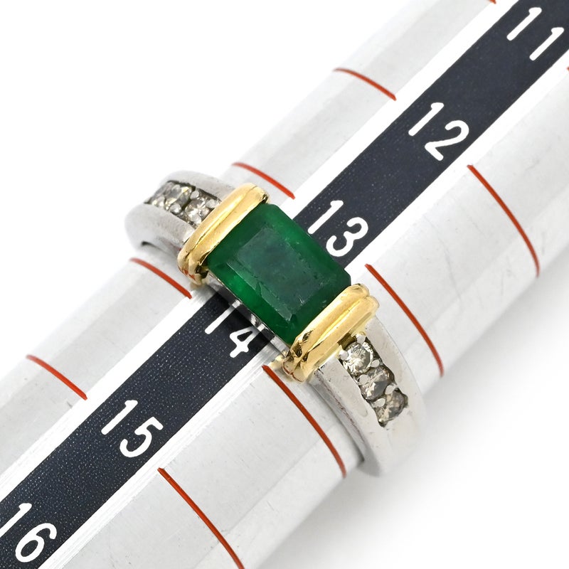 リング 指輪 エメラルド ダイヤモンド リング プラチナシルバー×イエローゴールド×エメラルドグリーン グリーン 緑 13.5号 【中古】