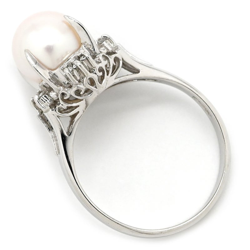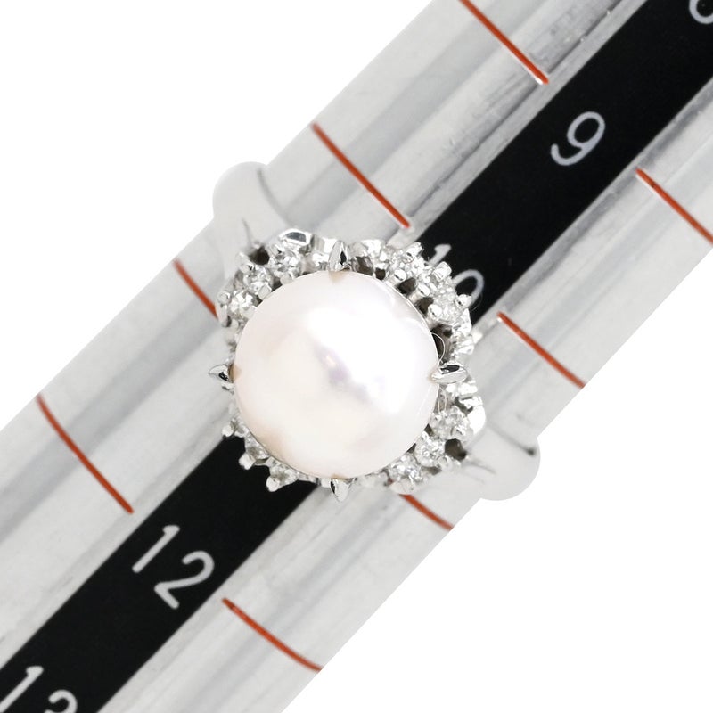 リング 指輪 パール ダイヤリング プラチナシルバー 1粒 1P 10.5号 【中古】